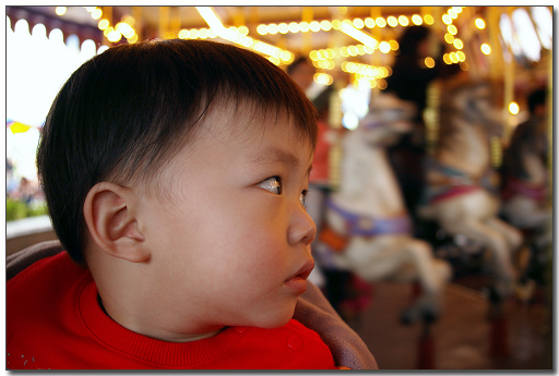 之後去玩「旋轉木馬」,始終b朗年齡還小兼且開始疲倦想睡,騎在木馬上也沒有多大的反應;