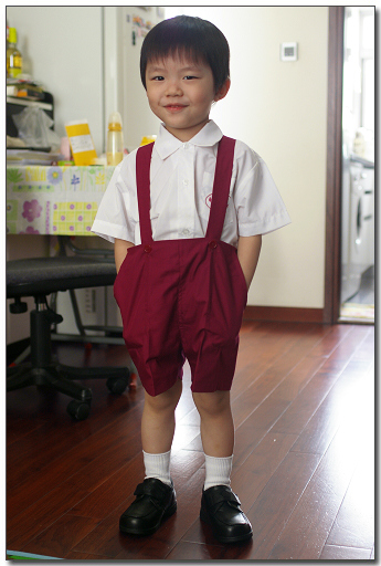 b朗入讀的幼稚園已於8月31日開課,學校特別安排頭三天的上課時間只是一小時及須家長陪同以作適應,第一天由朗媽陪同,第二、三天就由朗爸負責;