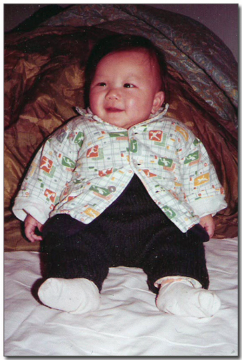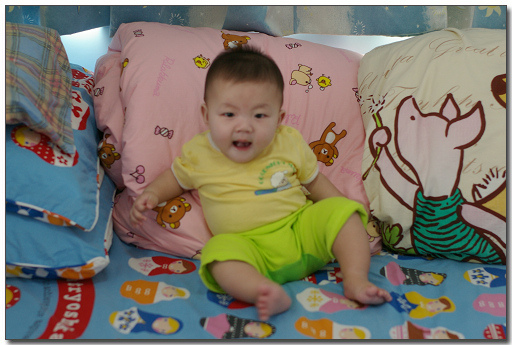 以下是b朗七個月零五天大(即今天),原本想模仿上圖那模樣,可是很難讓b朗獨個兒坐定下來......