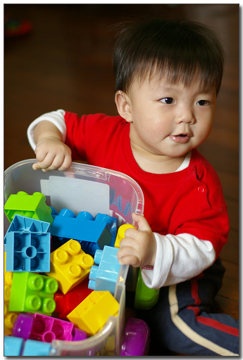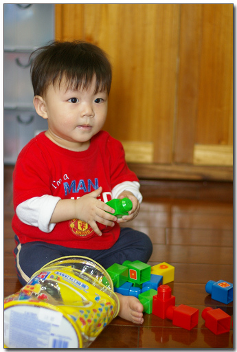 3月21日一歲後的b朗是時候要學習玩積木,不過現階段他對這些積木的興趣不大,亦只懂將積木拆開而未懂組合起來;其實b朗對每件玩具都只是三分鐘熱度,卻偏愛一些非玩具的東西,如朗媽的手提電話,朗爸電腦的鍵盤和計算機等;左邊體積較小的是b朗姨姨送的生日禮物,右邊較大的那款盒子有把手可當拉車玩。我們再度抽不中基督教服務處新一期的幼潛課程,所以報名了保護兒童會的親子遊樂場,活動將於四月末開始。