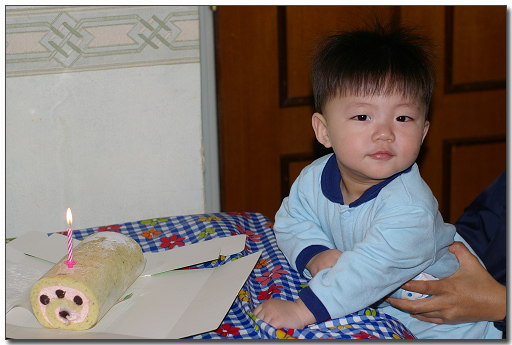 今天是b朗一歲一個月大,因朗爸和朗媽也會頗晚才回家,所以昨天在沙田逛街時,於Das Gute買下慶生蛋糕,到今天早上吹蠟燭慶祝,這個期間限定的日本櫻花卷蛋糕味道還可以;