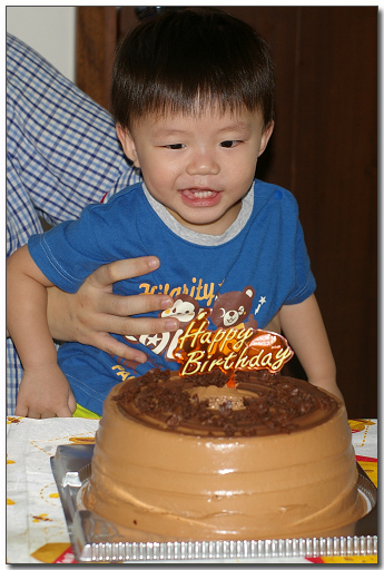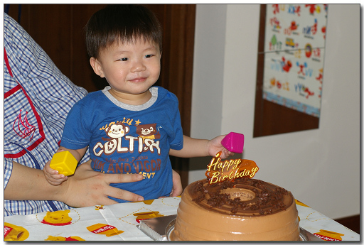 今天是b朗一歲五個月大,慶祝蛋糕是昨日買下的美心魔鬼蛋糕;