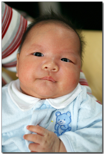 護士照常先問細b的喝奶狀況,然後問細b會否懂得笑及對我們的逗玩有否反應,再檢查雙腿的活動能力;
