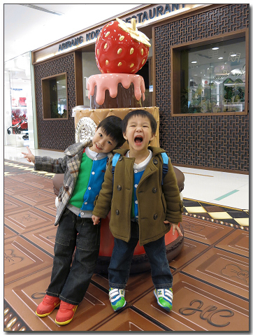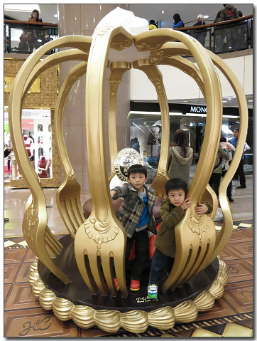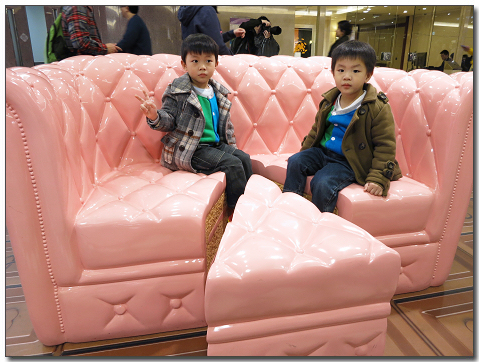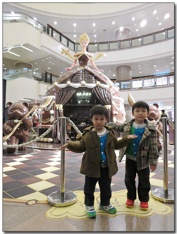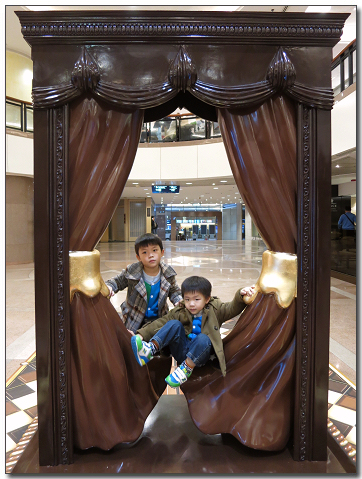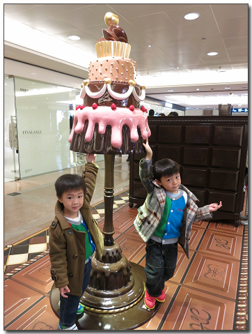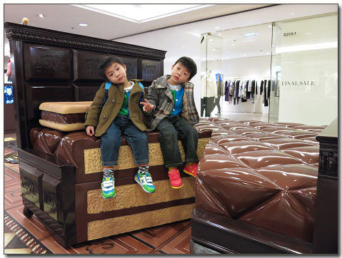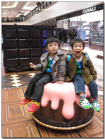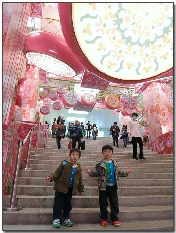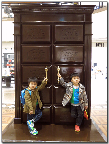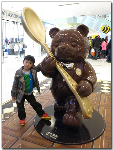 1月19日朗媽說尖沙嘴海港城有很多巧克力的裝飾佈置,今天下午就帶大小朗出去拍拍照並吃晚飯;主題名稱為「Chocolate Trial情‧尋朱古力 」,除了數十個大大小小有關巧克力的佈置,還有十多個巧克力名店的攤位,嗜巧克力者不可錯過; 海運大廈正門前的新春佈置