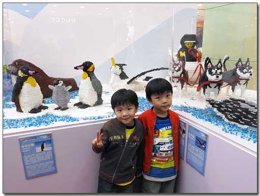 9月28日下午帶大小朗到尖沙嘴,我們先到九龍公園遊玩,然後移步至海港城看看樂高LEGO冰極小天地展覽和吃下午茶;活動主題是以LEGO積木砌出南北極的動物如企鵝、海獅和北極熊等,以地球暖化宣揚環境保育訊息,即場損款40港元或以上于香港公益金可讓小孩參與組合小企鵝,並獲增LEGO紀念品; 玩具反斗城內的LEGO模型